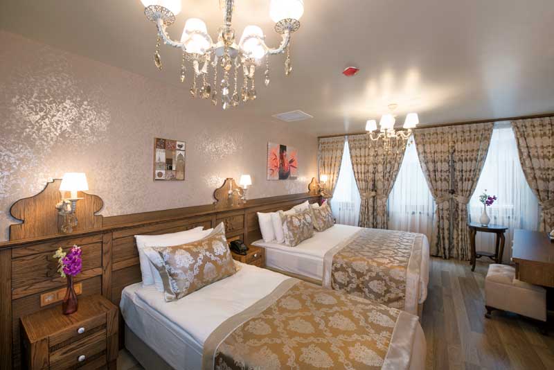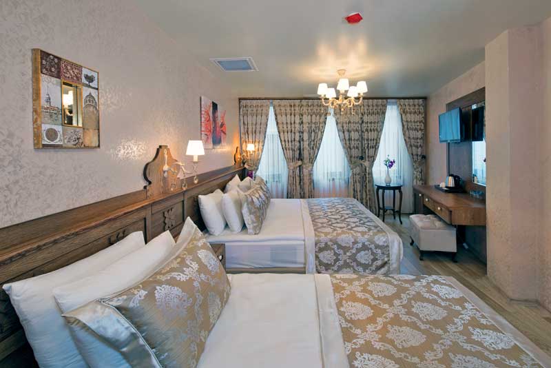 Üç kişilik odalar şehir manzaralıdır. Odalar, Osmanlı tarzında tasarlanmış, ancak tüm modern olanakları sunan geçmişin ve günümüzün zarif bir karışımıdır. Her oda elektronik oda anahtarı kilitleri, klima, minibar, kasa, duman dedektörü, uydu tv kanalı, LCD tv, kablosuz internet erişimi ve direkt telefon ile donatılmıştır.